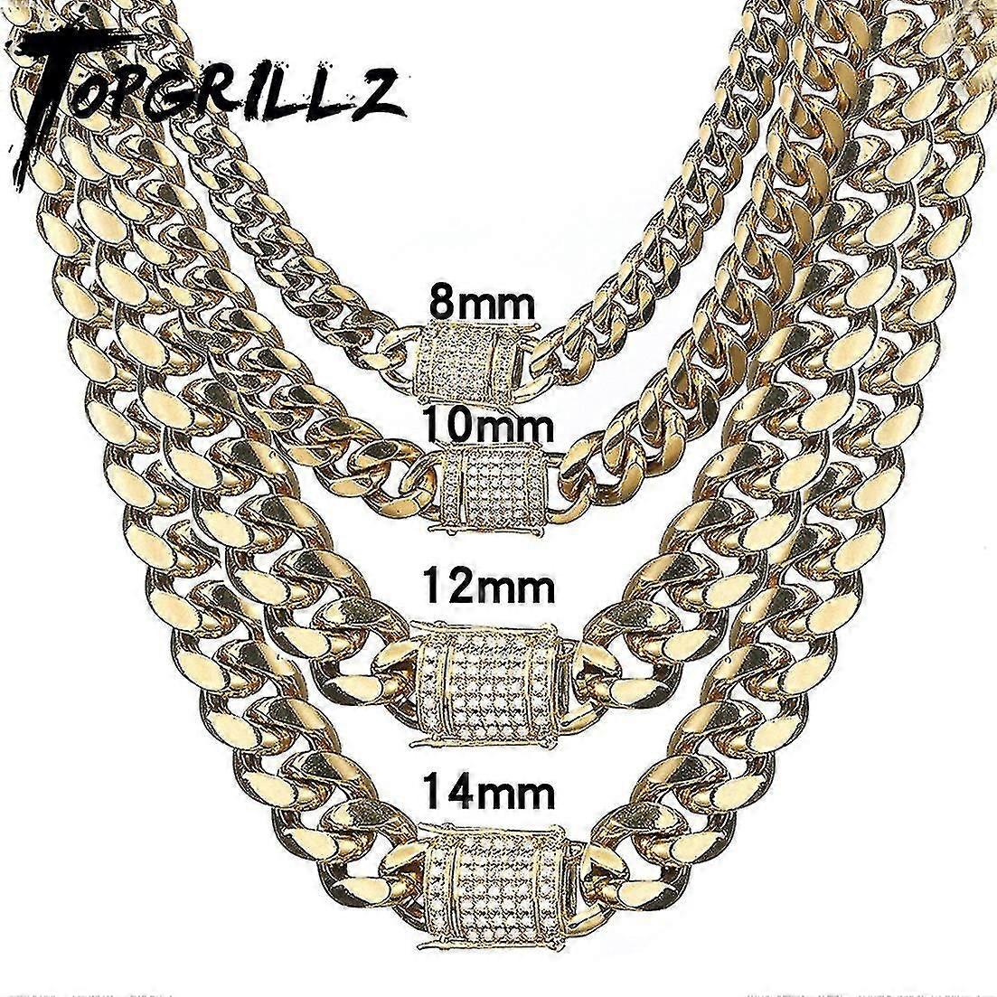Topgrillz Necklace Bracelet Set 8/10/12/14mm Stainless Steel Gold Miami Cuban Curb Chain Hip Hop Fashion Jewelry Gift For Men