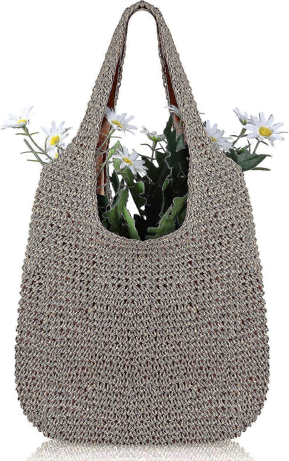 Women Straw Beach Bag Bucket Tote Summer Woven Handmade Handbag Shoulder Bag