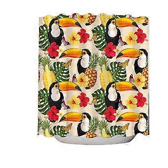 Toucans τροπικά λουλούδια και κουρτίνα ντους ανανά