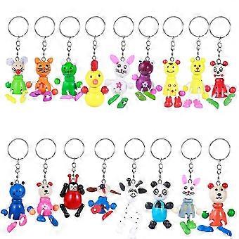 TOYMYTOY 24PCS Cartoon Animal Wooden Key Chain Rings Creative Keychain Mobile Chain Decor Gift (Random Pattern)