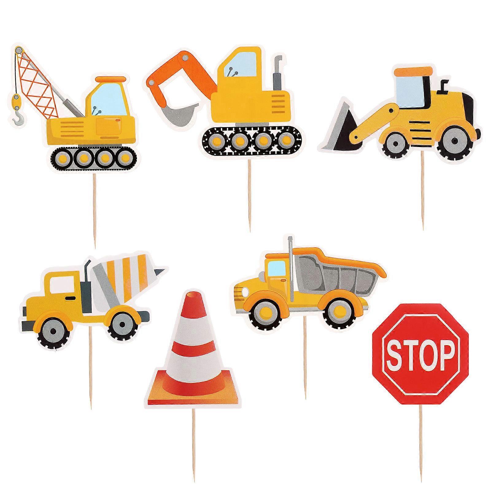 Toyvian 24pcs Excavator and Dump Truck Cake Toppers Cupcake Picks Birthday Dessert Decorations