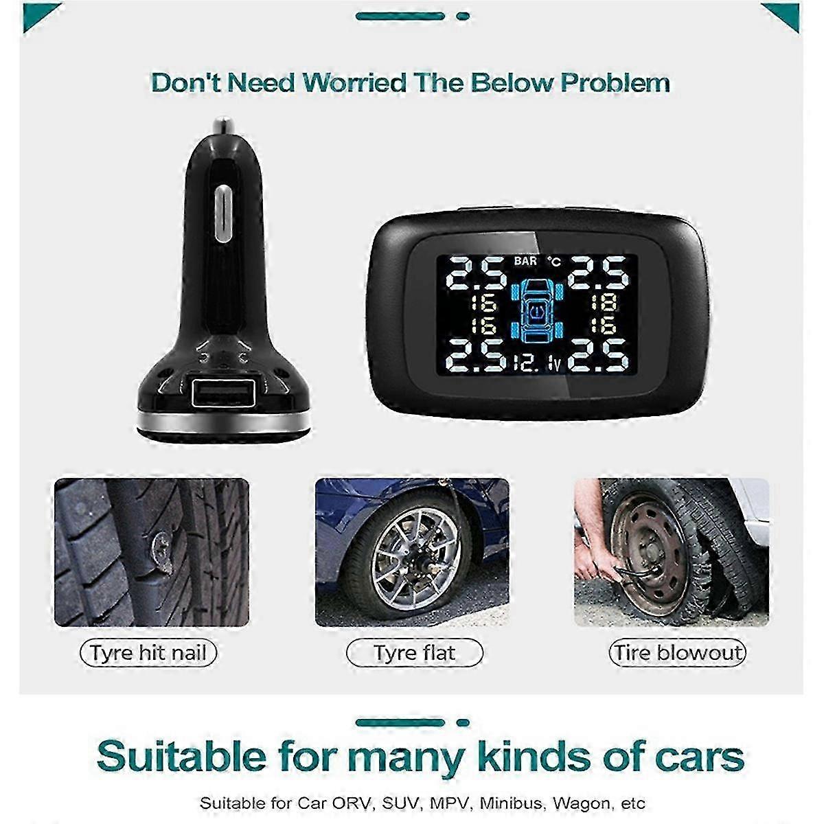 TPMS Car Charger Tpms Sensor Tire Pressure Monitoring System Auto Tire Air Pressure Security Alarm 4 Sensors Build-in