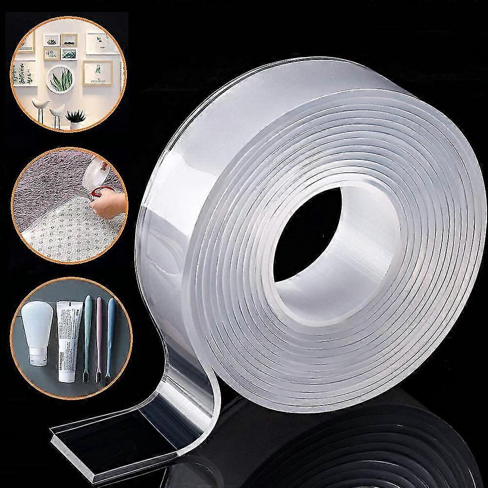 removabletraceless adhesive nano gel tape, washable strong adsorption double sided clear silicone tape for wall,kitchen,carpet,photo fixing