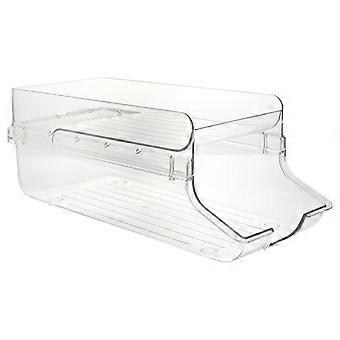 Transparent Plastic Beverage Holder for Fridge with Double Layer Design to Save Space and Keep Cans Organized 10.5 x 6.5 x 4.3 inches