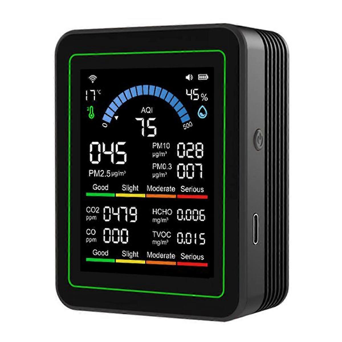 Tuya WiFi 10-in-1 Air Quality Monitor Formaldehyde Temperature Humidity Tester CO 2 Detector for Indoor/Outdoor Black