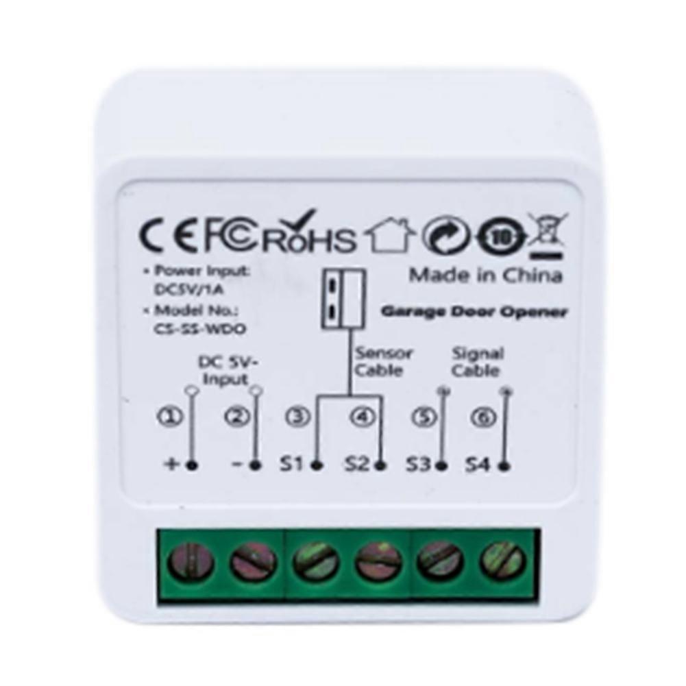 App remote control: Support Smart Life app/Tuya smart app. Real-time Feedback: The App interface provides real-time feedback on the status of the garage door to confirm safety. Real-time Notification: No matter where you are, you will receive App notifications when the garage door is opened/closed. Record: The opening or closing of the garage door will be automatically recorded, and you can view the history anytime in the app. Timer: You can set a timer to open or close the garage door at a set time. Voice Control: works with Amazon Alexa and Google Home. Input Voltage: DC5V/1A(Micro-USB) Wireless Protocol: Wi-Fi 2.4GHz(don't support 5GHz Wifi band) App name: Tuya Smart/Smart Life Sensor action distance: less than 30mm Length of the sensor cable: 5 meters Material: plastic colour: White Package Contents: 1 x Tuya WiFi Garage Door Opener