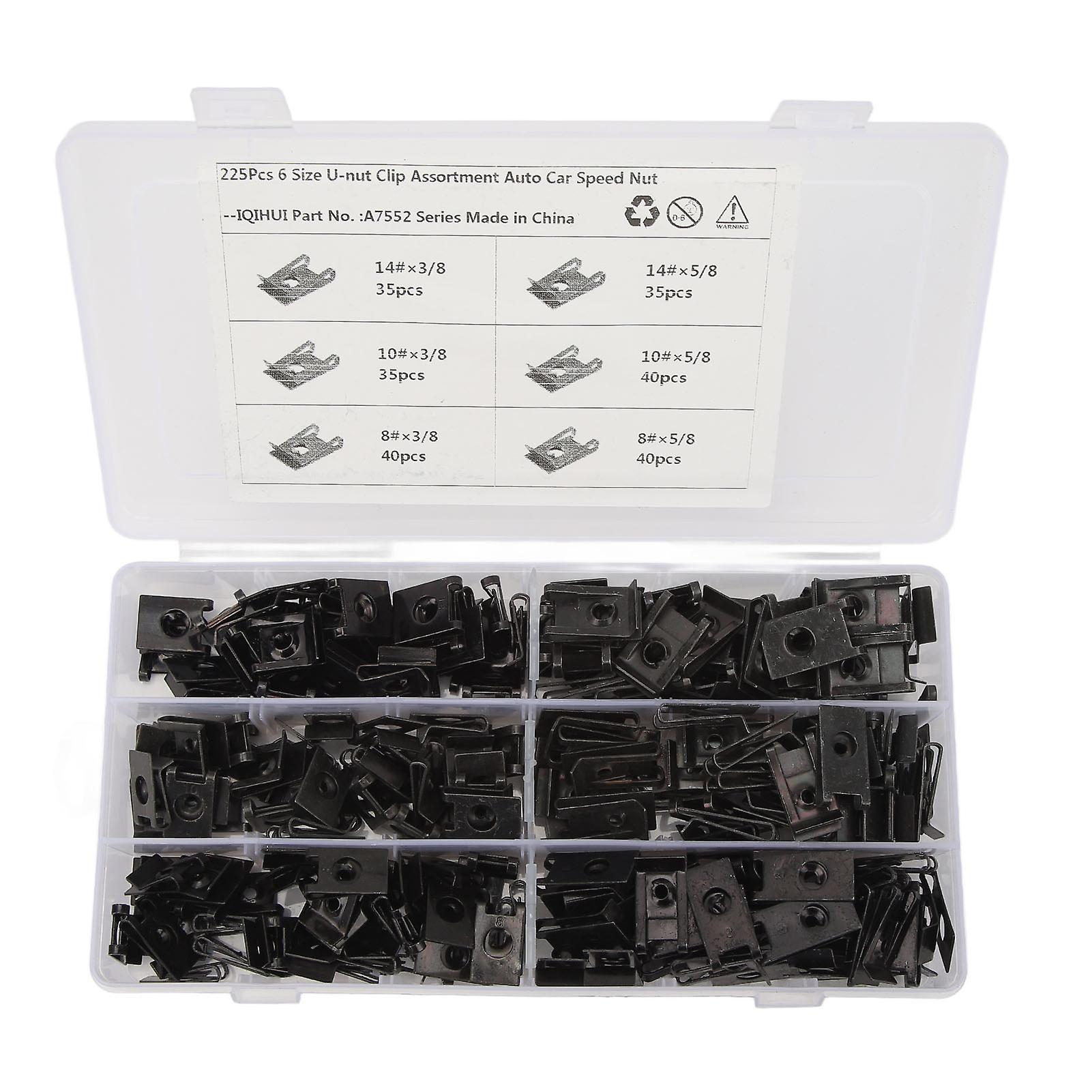 U Nut Clip Kit Stable Fixing High Strength 6 Size U Nuts Set for Car Train Plane Truck Caravan 225Pcs