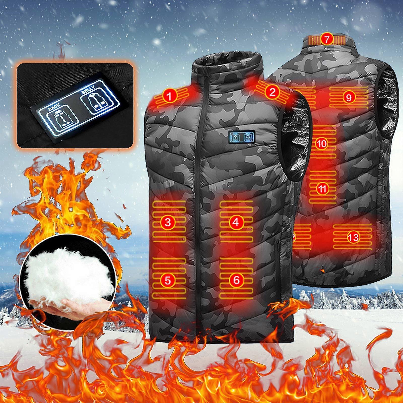 Unisex Casual Zipper Thirteen Area Camouflage Shoulder Heat Smart Heating Vest USB Charging