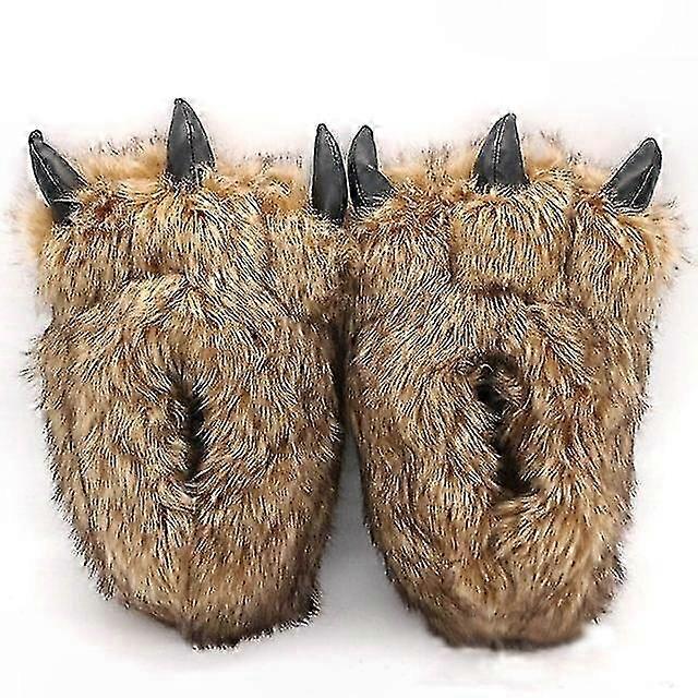 Unisex Winter Plush Cartoon Bear Claw Slippers for Indoor Home Use Soft Cotton Couple Floor Shoes