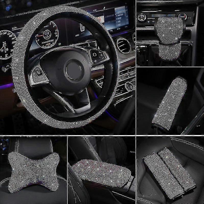 Description Features : Design : Fashion design, with bright rhinestones. High quality: Fine workmanship, excellent practicality and durability. Universal : Fit for all vehicles and four season. Function : Make your car personalized. Attracts peoples sights Used for: Provide extra protection all around your steering wheel and other car internal parts, make your driving life more comfortable, safer, more healthy Specification: Material: PVC, rhinestone Dimensions: as shown Color as shown Include: Choice 1: 1 x Steering Wheel Cover Choice 2: 1 x Cushion Cover Choice 3: 1 Pair x Shoulder Guards Cover Choice 4: 1 x Hand Brake Cover Choice 5: 1 x Gears Shifts Cover Choice 6: 1 x Armrest Pad Cover Choice 7: 1 x Rearview Mirror Cover includes: Choice 1: 1 x Steering Wheel Cover Choice 2: 1 x Cushion Cover Choice 3: 1 Pair x Shoulder Guards Cover Choice 4: 1 x Hand Brake Cover Choice 5: 1 x Gears Shifts Cover Choice 6: 1 x Armrest Pad Cover Choice 7: 1 x Rearview Mirror Cover