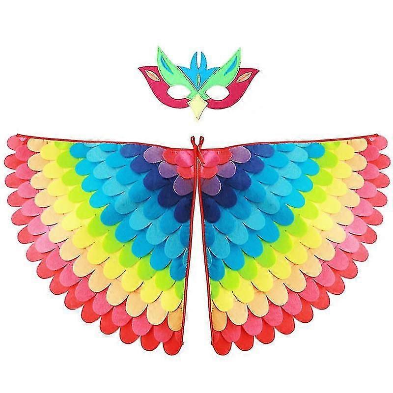 Birds Wings Costume Set Halloween Peacock Parrot Cape With Felt Mask Kids Fancy Dress Upw37