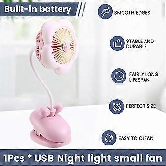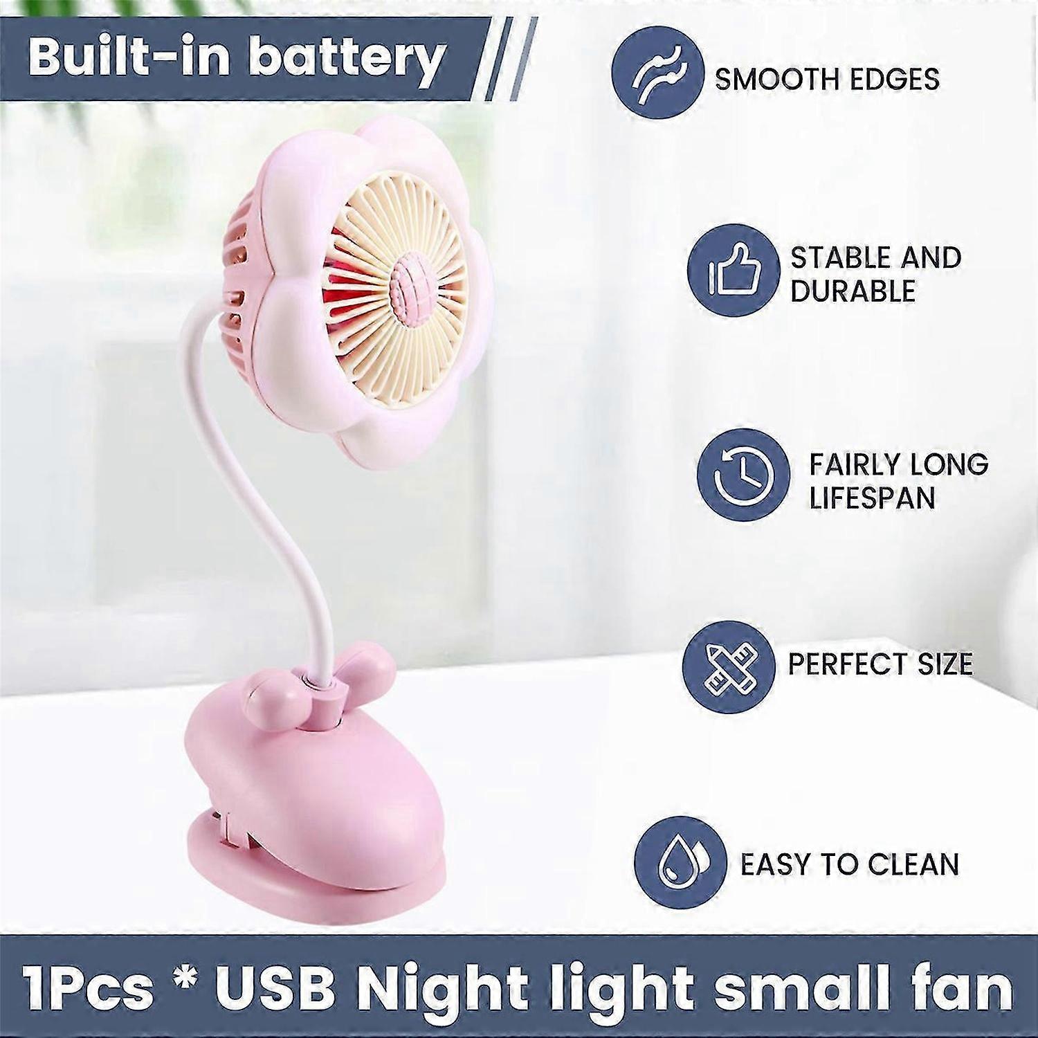 USB Rechargeable Clip on Fan Cute Design Flower Clip on Fan 360° Rotate Cooling Fan with LED Lights