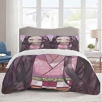 v1790 Σεντόνια Κλινοσκεπάσματα nezuko Σετ κλινοσκεπασμάτων Cartoon Παπλωματοθήκη Ελαφριά σετ στοιχήματος 3 τεμαχίων για παιδιά Αγόρια Κορίτσια (1 παπλωματοθήκη και 2 μαξιλαροθήκες)