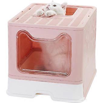 Vealind Foldable Cat Litter Tray Cats Litter Box with Front Entry & Top Exit XXL Extra Large Space Toilet Boxes with Trays Lid and Pet Litter Shovel
