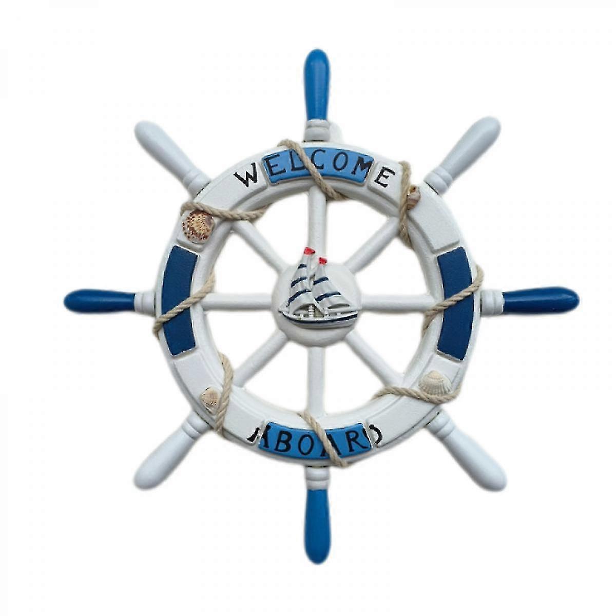 Veeki Nautical Beach Wooden Boat Ship Steering Wheel Fishing Net Shell Home Wall Decor (bluish White)