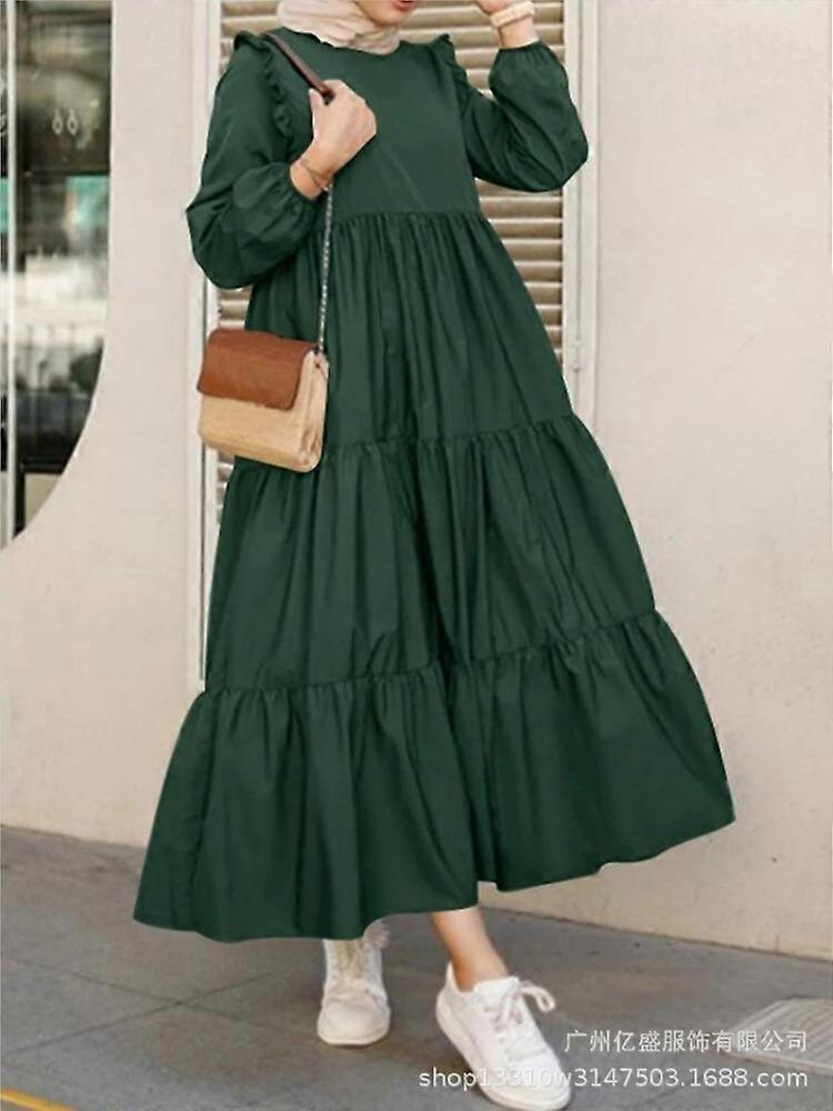 Vintage Ruffles Muslim Women Dress Long Sleeve Spring Turkey Moroccan Kaftan Casual Abaya Hijab Dresses Vestido Long Maxi Abaya