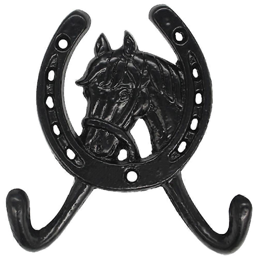 Vintage Cast Iron Wall Hook with Horse Head and Horseshoe Design – Multifunctional Coat Hanger for Entryway, Bedroom, and Bathroom Decor