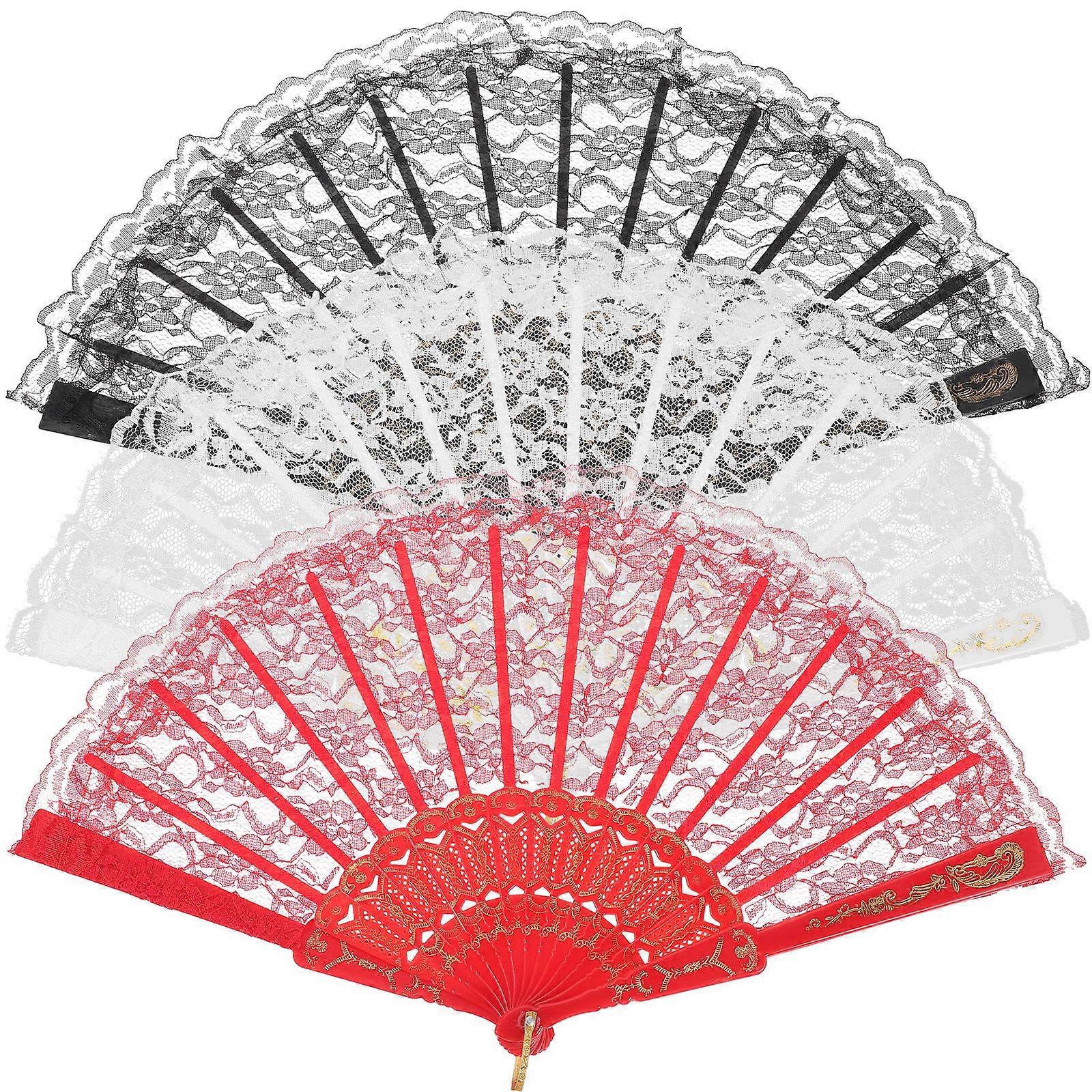 Vintage Lace Fan Handheld Folding Women Dancing Prop Photography 3Pcs