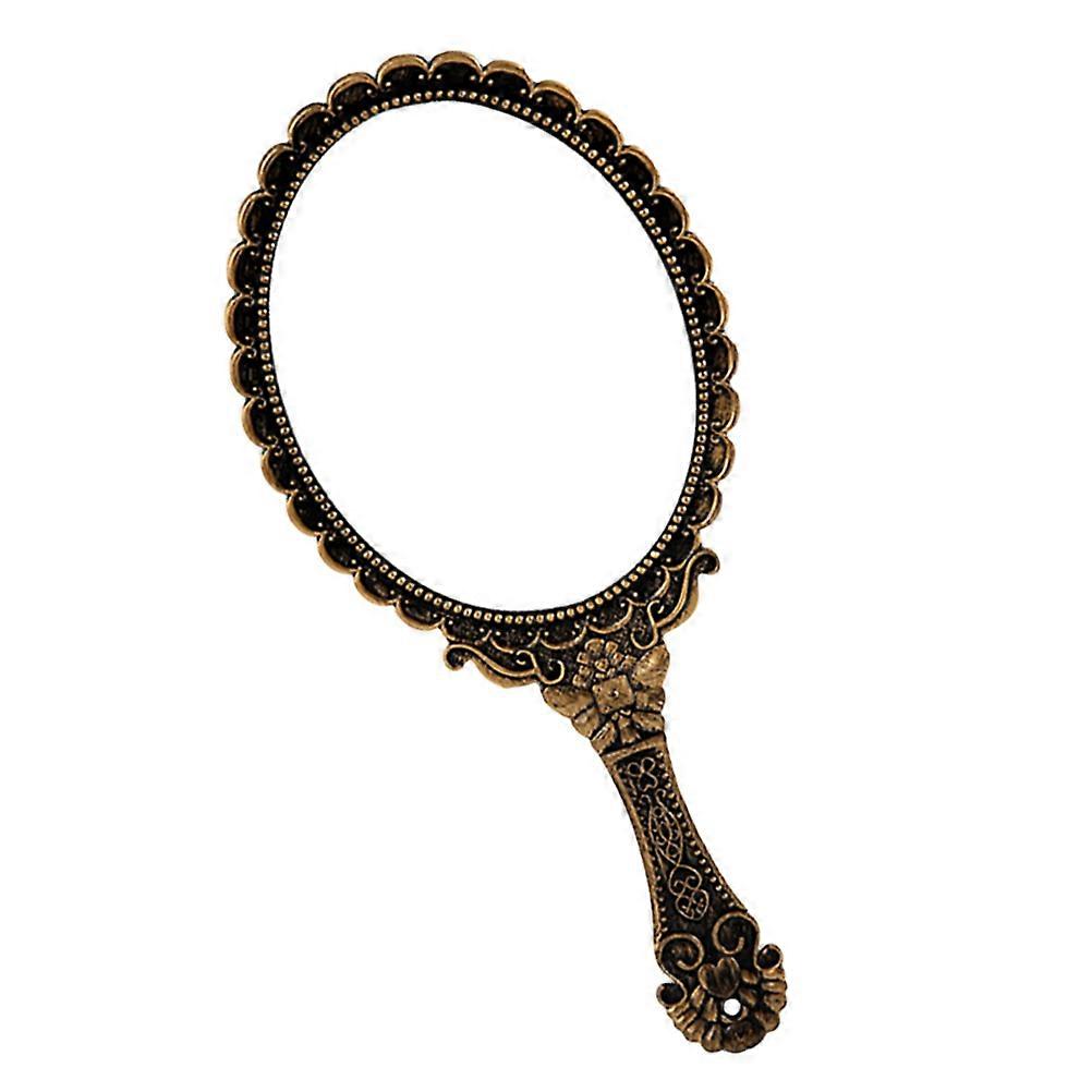Vintage Lightweight Handheld Makeup Mirror Oval Cosmetic Mirror for Women Antique Design with Embossed Flowers Travel Friendly Bronze and Black 2PCS
