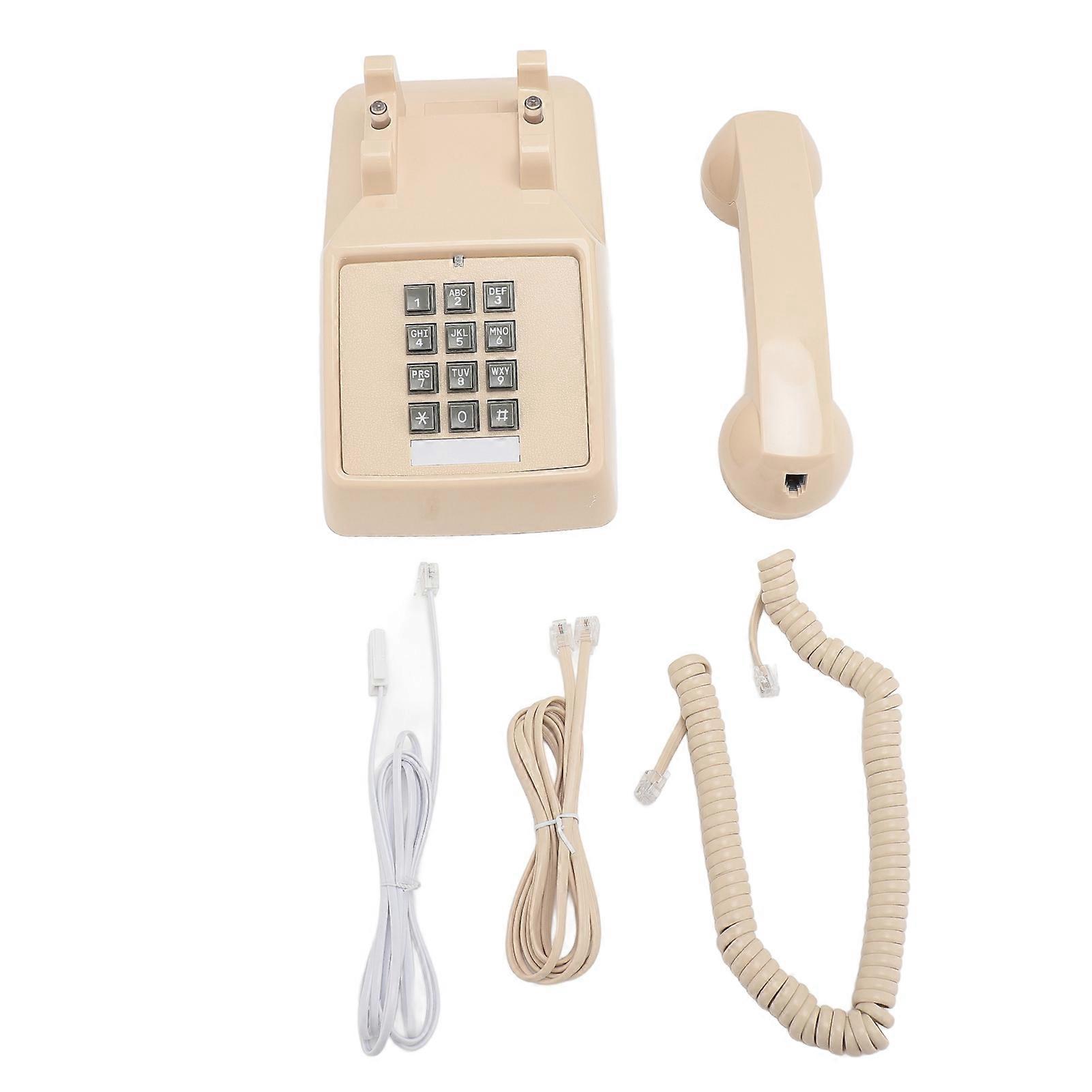 Vintage Corded Phone Mechanical Ringer with Volume Control Large Button Retro Desk Telephone for Home and School Beige