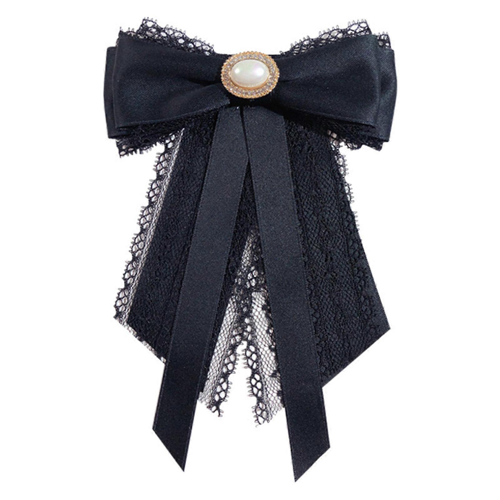 Vintage Imitation Pearl Ribbon Brooch Pins for Women Suit Shirt Tie Pins Bow Tie Bowtie Neck Tie Black