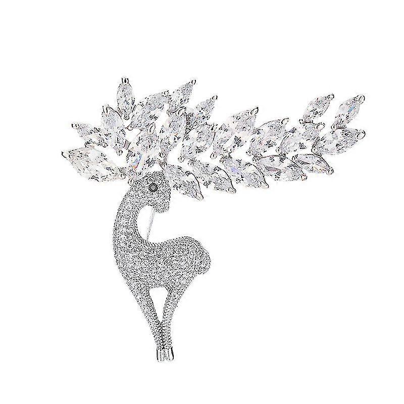 Vintage Elegant Fawn For Ladies, Silver White Gold Plated Brooches Pins With Cubic Zirconia