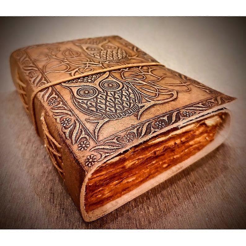 Vintage Owl Embossed Handmade Large Leather Bound Travel Journal Acid Free Cotton Recycled Paper , Deckle Edge Vintage Paper Writing Diary