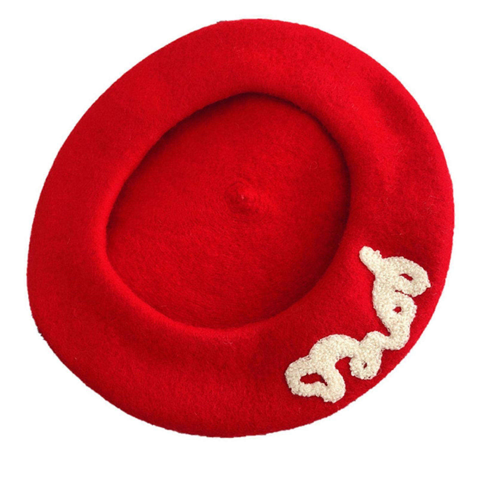 Vintage Beret Letters Embroidered Painter Hat All-match Niche Octagonal Hat Gift for New Year Thanksgiving Valentine Day Red