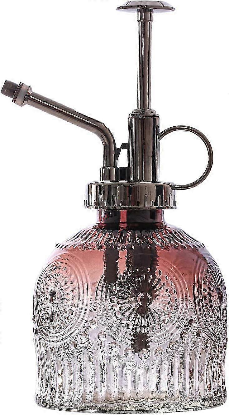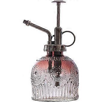 Vintage Glass Plant Mister Spray Bottle 6.3inch Tall Watering Can for Succulents with Top Pump in Brown Clear Glass