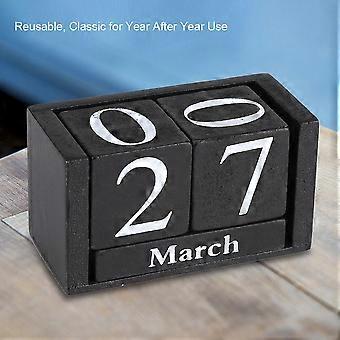 Vintage Wooden Calendar Desktop Wood Block Month Date Display Home Office Decoration
