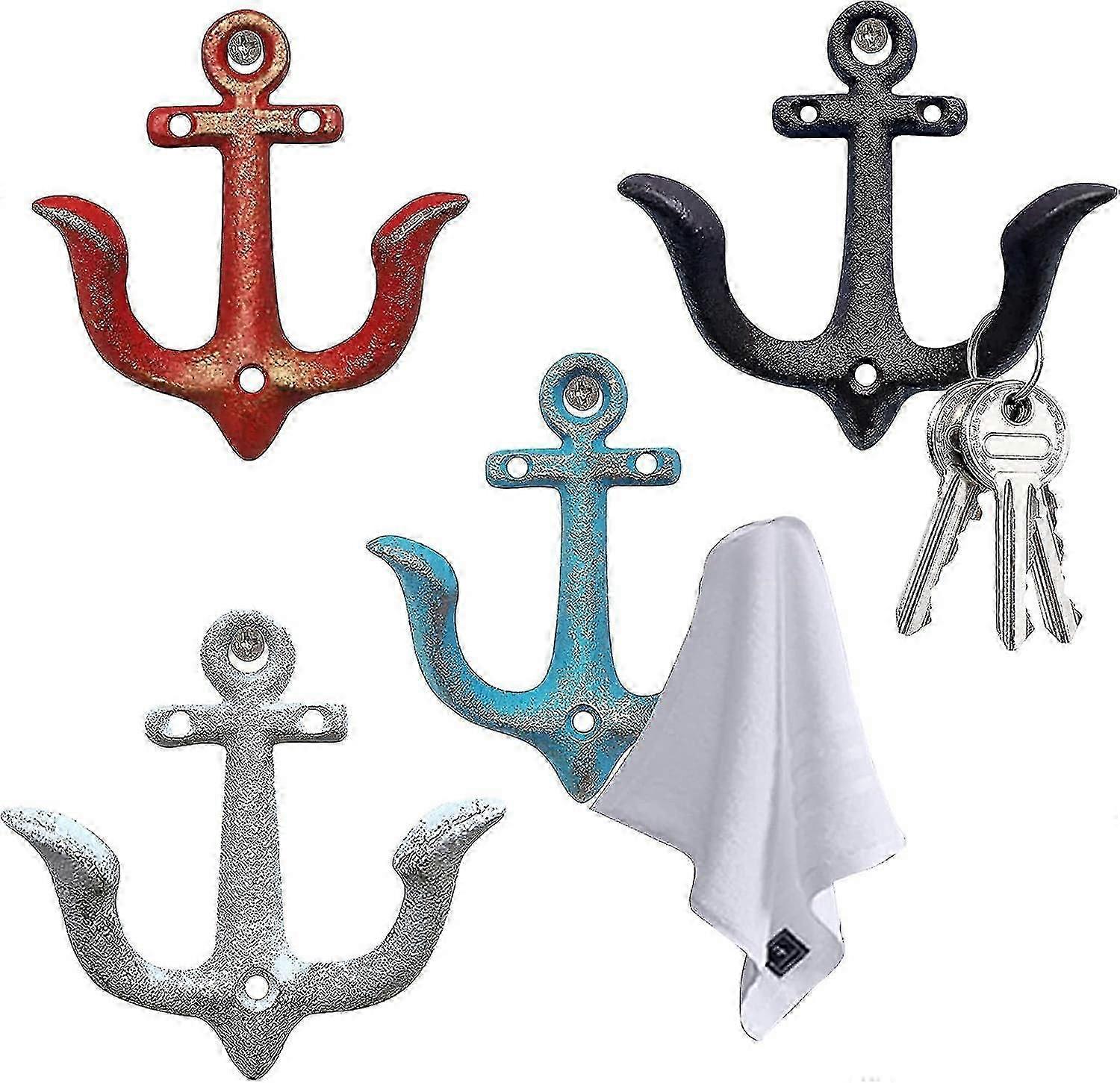 Vintage Rustic Cast Iron Wall Hooks With Nautical Anchor Design, Shabby Chic Antique Metal Decorative Wall Hooks For Bathroom, Coat Hooks, Screws Incl