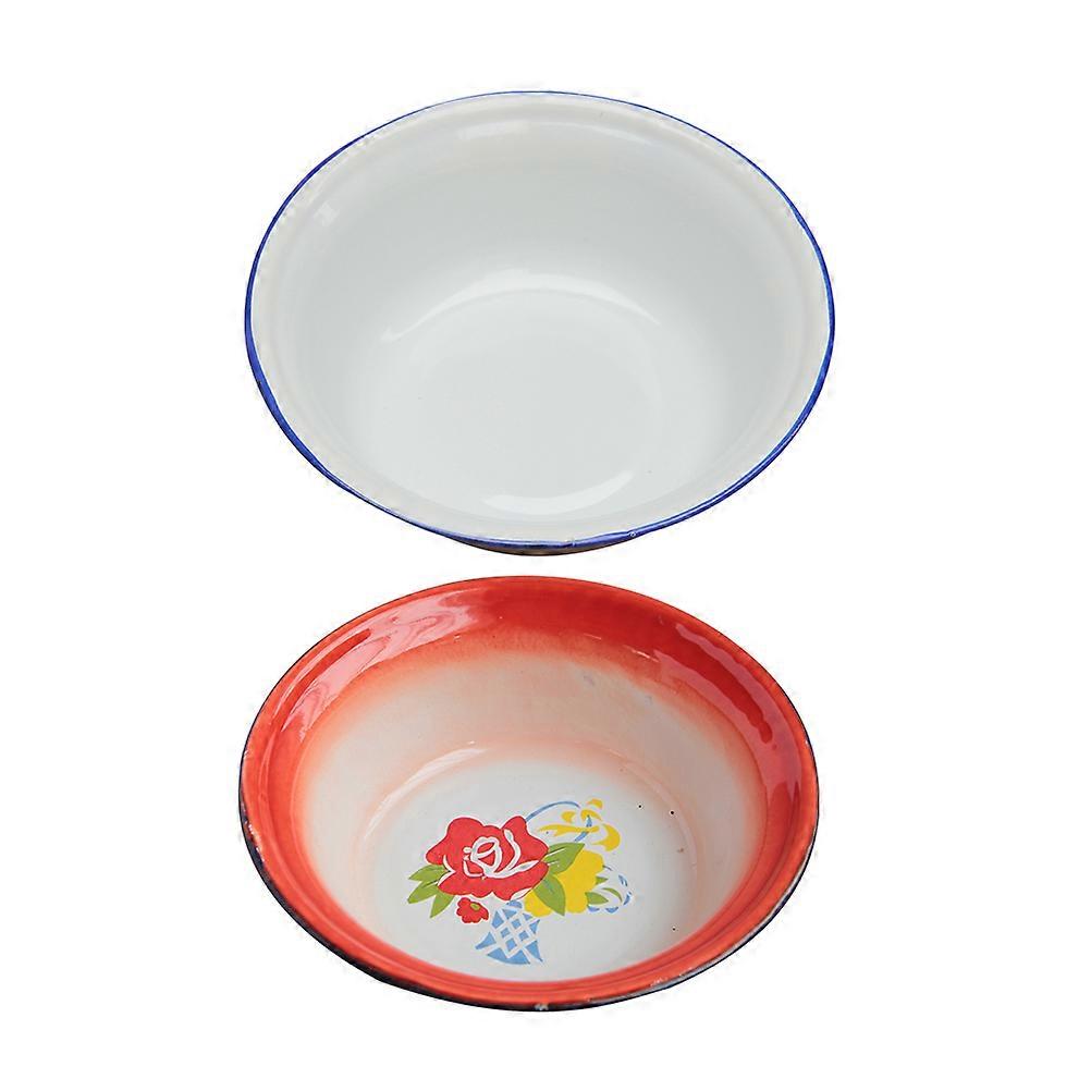 Vintage Enamel Bowl Soup Basin For Home Use Household Users Round Assorted Color Storage 4 Pcs