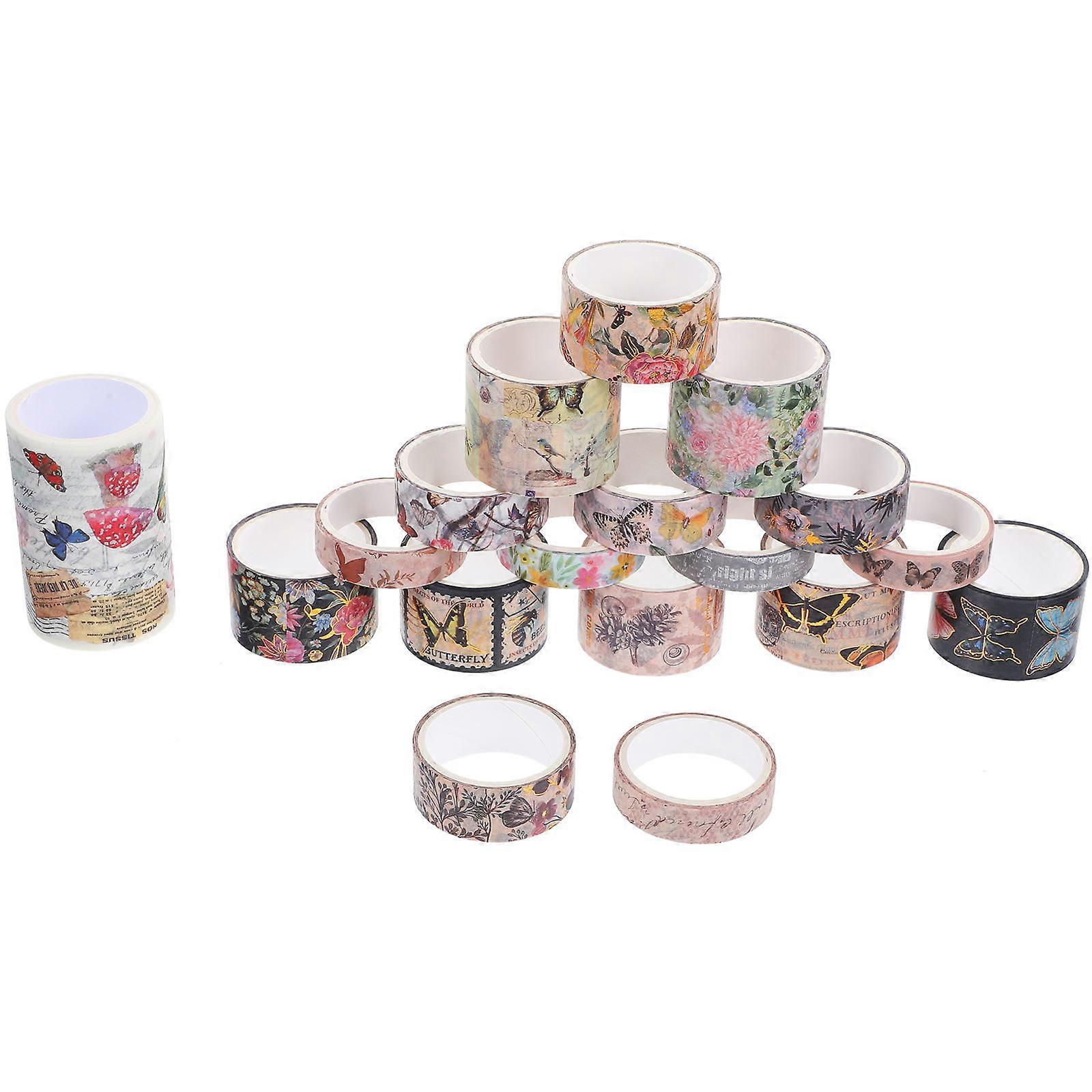Vintage Washi Tape 18 Rolls on a Roll Decorative Butterfly Stickers for Albums and Postcards Assorted Color Great for Scrapbooking