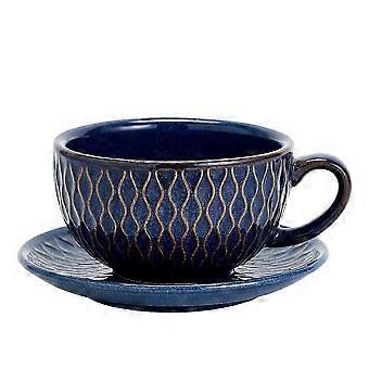 Vintage 12 oz Ανάγλυφο μπλε κεραμικό κύπελλο καπουτσίνο τέχνης Latte Art με πιατάκι 2025