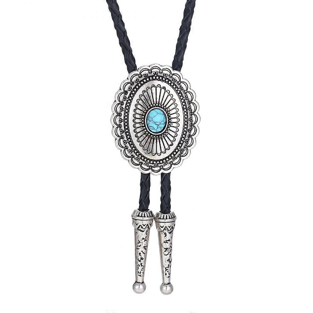 Vintage Turquoise Stone Bolo Tie For Men Western Cowboy Oval Cool Retro Bola Tie Necktie