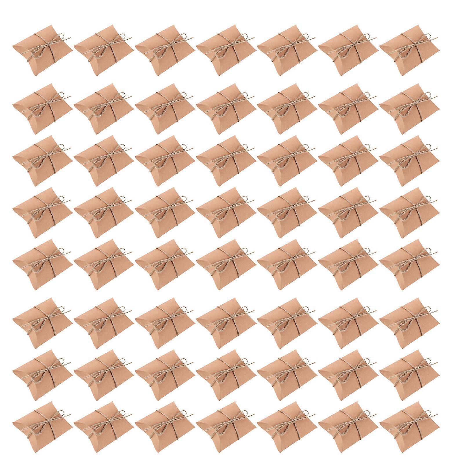 Our kraft paper pillow candy boxes are for adding a rustic touch to your holiday parties. Made from durable kraft paper, these boxes are both durable . The included jute rope adds a charming vintage feel, making them ideal for weddings, birthdays, and other special occasions. Use them to package homemade candies, small present, or party favors. Features -Color:Khaki -Material:Kraft Paper -Size:9.00X6.00X2.50cm/3.54X2.36X0.98in -Unique design: adds a festive atmosphere to your party, making it more joyful and memorable -Vintage style: kraft paper box with jute rope packaging showcases a retro style, enhancing the present elegance -For present: ideal for holiday present exchanges, solving present giving and making the recipient feel cherished -Portable and convenient: compact and , suitable for various gatherings, easy to carry, and share sweetness anytime, anywhere -Sweet treats inside: contains selected candies to satisfy lovers, bringing a delightful festive experience Package list: 50 x holiday candy box