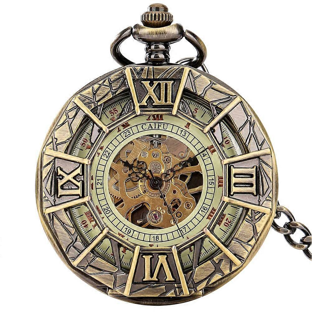 Vintage Hollow Mechanical Pocket Watch Luxury Pendant Chain Clock Man Roman Numerals Display Half Hunter Antique Timepiece Gift