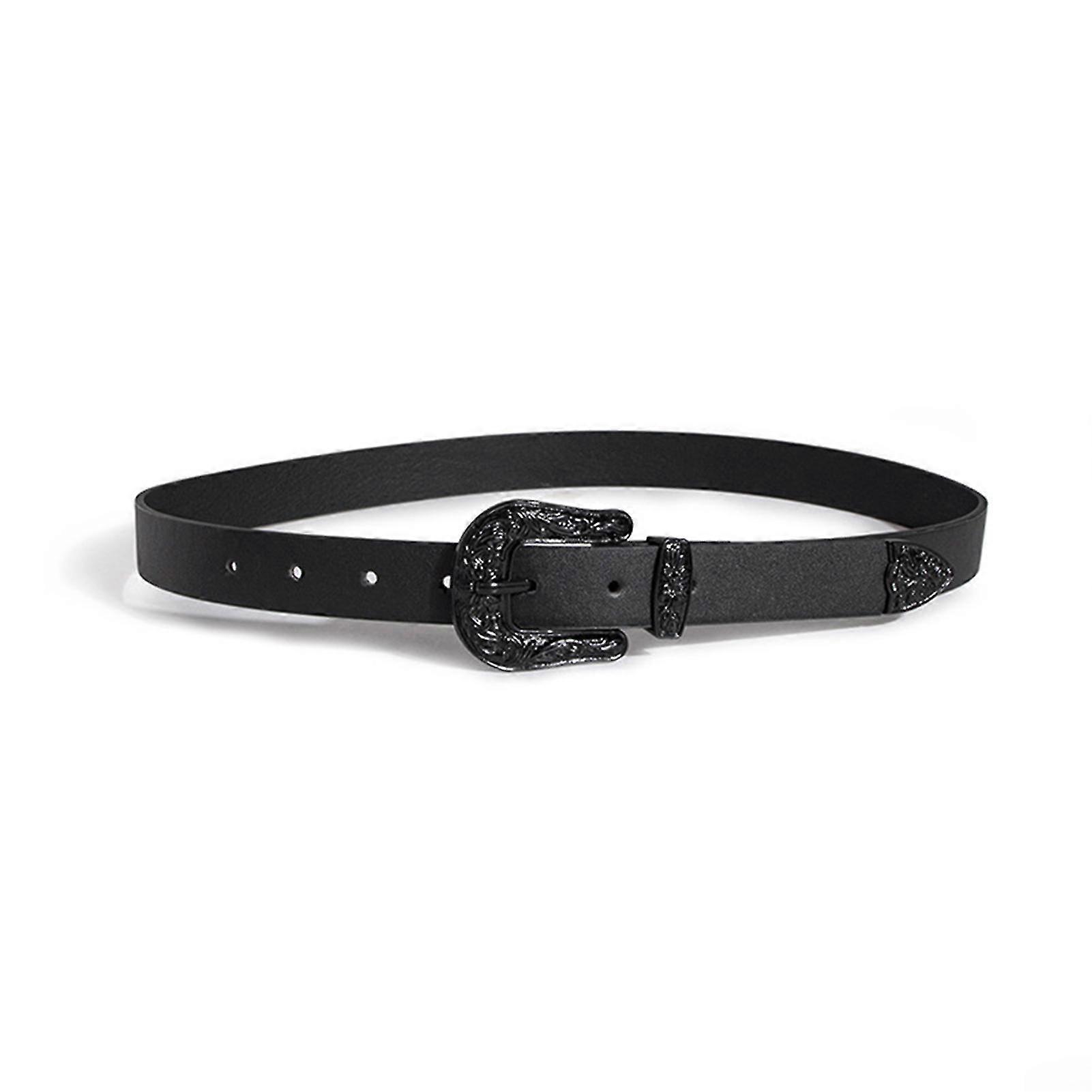 Vintage Solid-color Carved Buckle Belts Fashionable Leather Clothes Belt For Women Girl Female