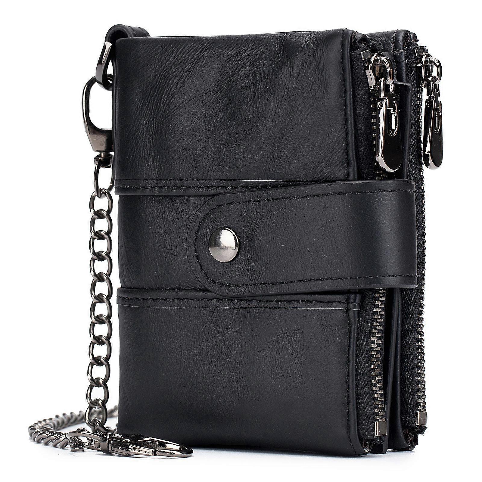 Men Vintage Cow Leather Wallet Card Holder Wallet Purse with Chain