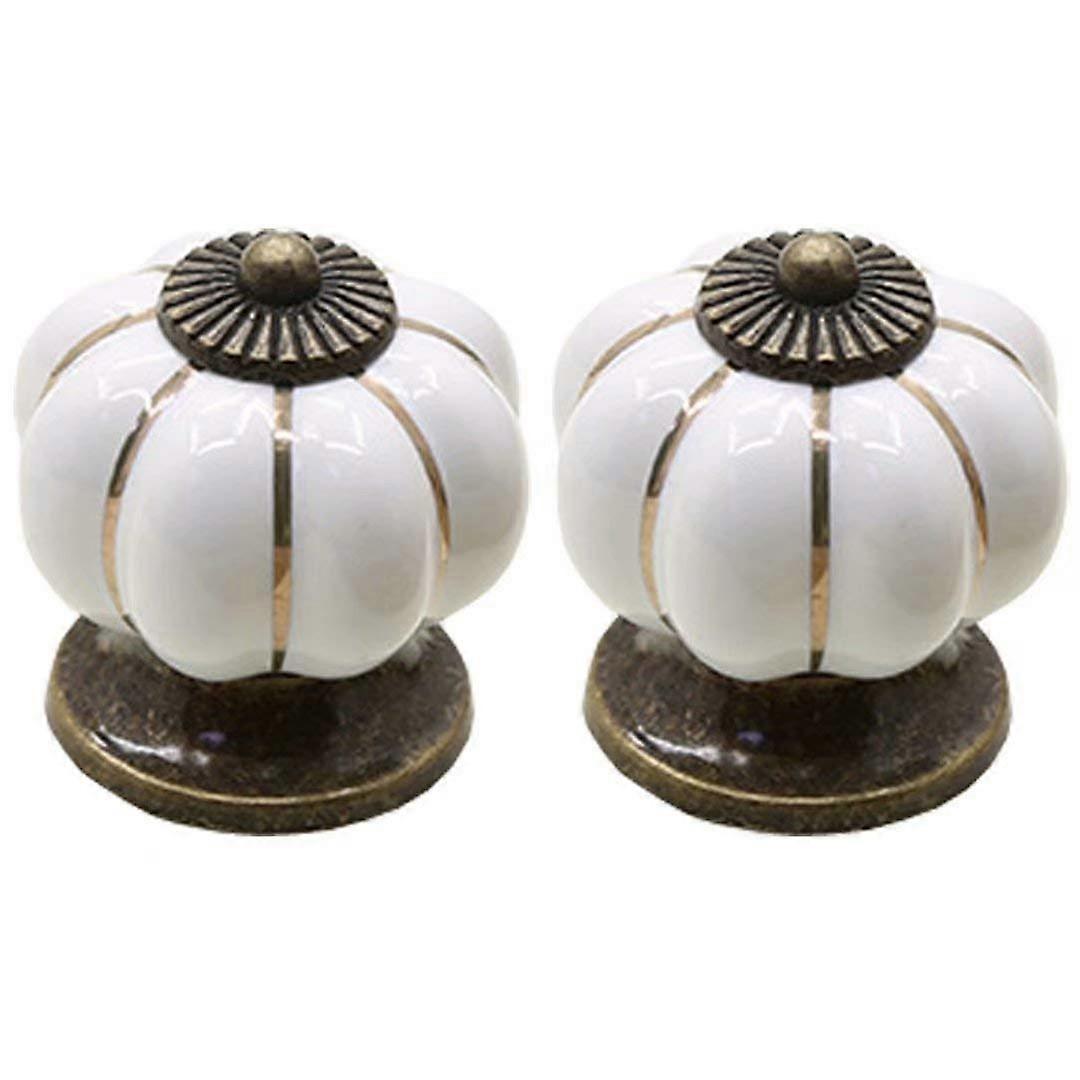 Vintagestyle cabinet knobs, 2 pieces, ceramic pumpkins, wardrobe handles, door knobs for children's faux furniture fittings (White)