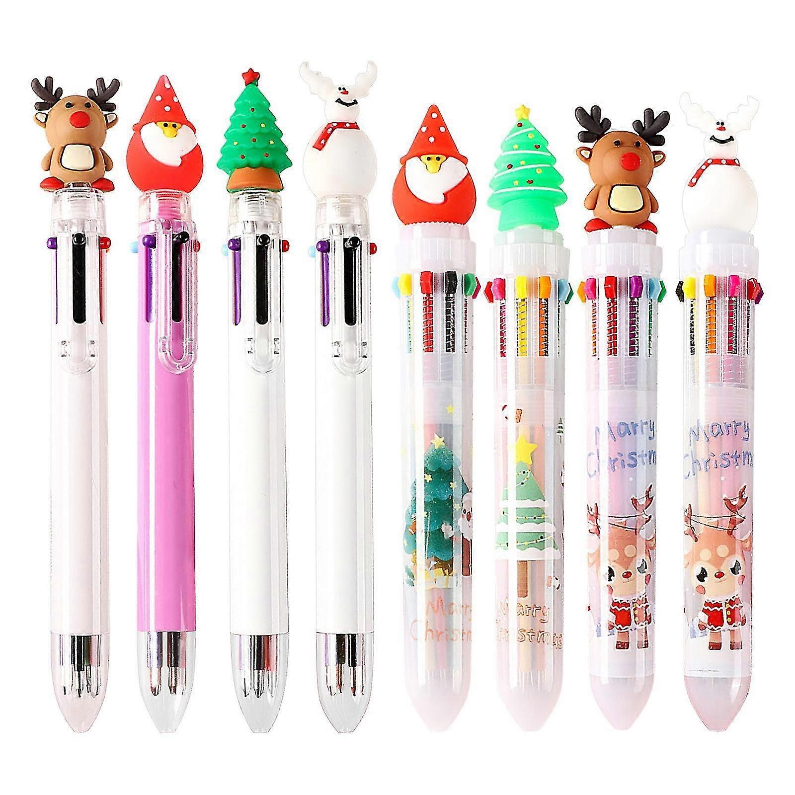 Wabjtam Cute Cartoon Christmas,10 Color Ballpoint Pen Multicolor Press Pen Stationery 7pcs