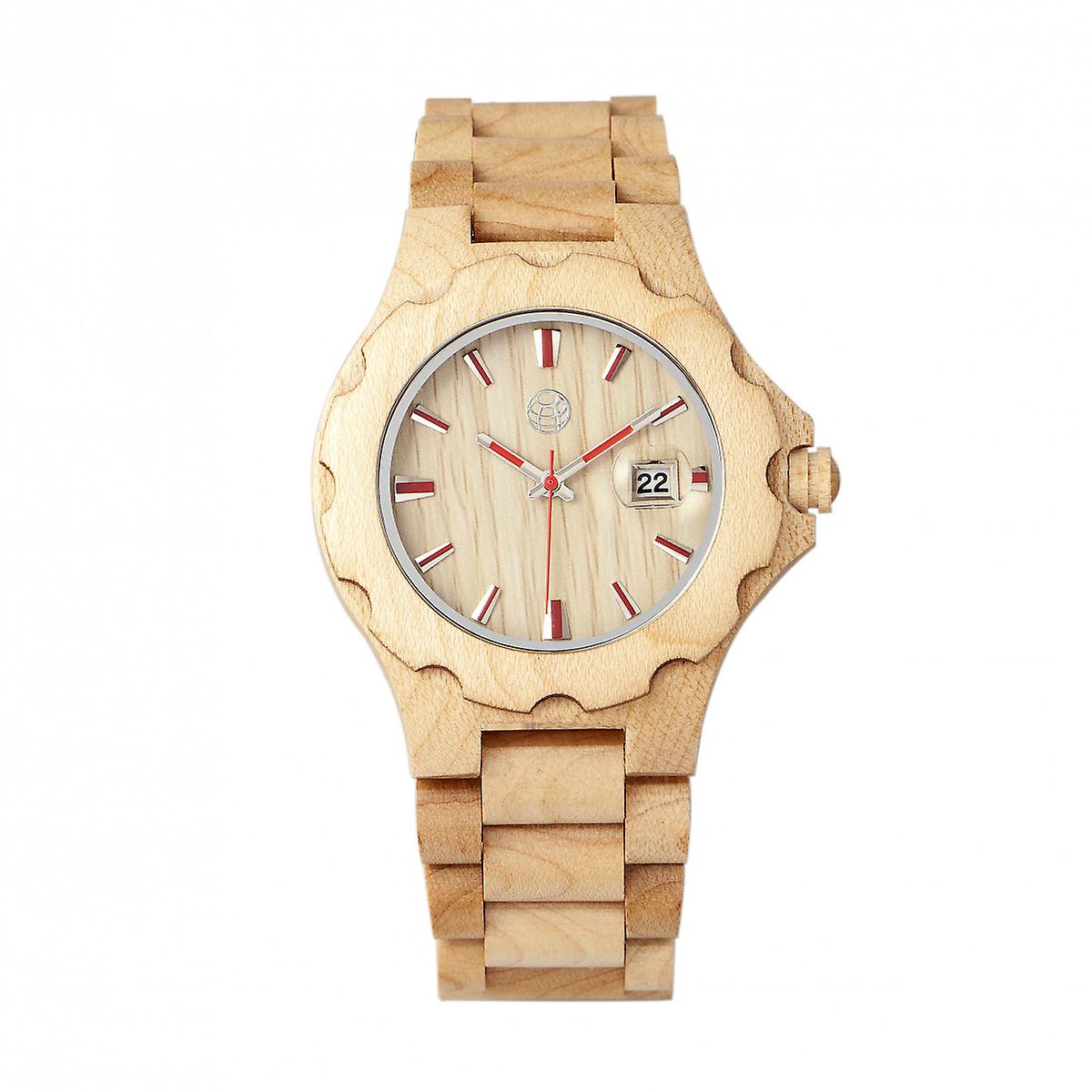 Earth Wood Gila Bracelet Watch w/Magnified Date - Khaki/Tan