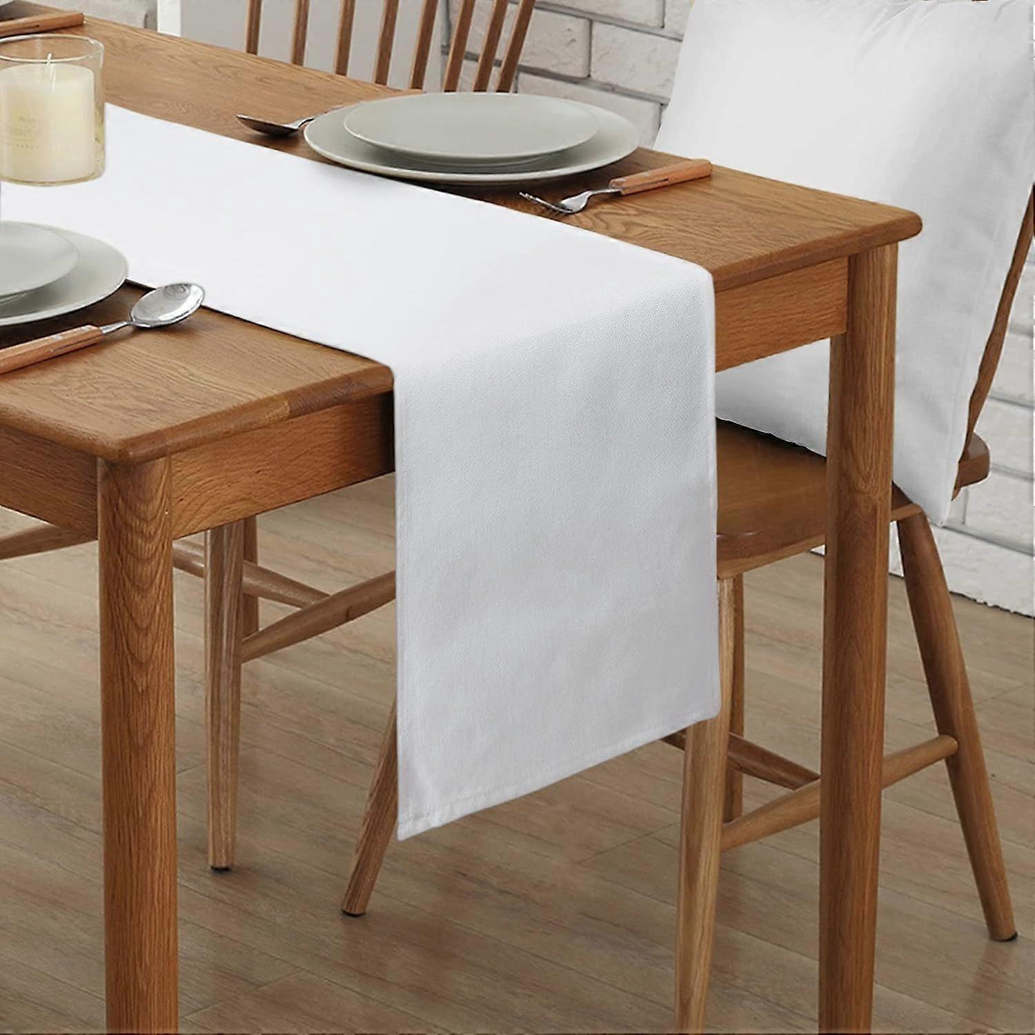 White Cotton Linen Rectangular Table Runner 13" x 48", Modern Simple White
