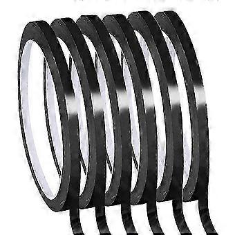 Whiteboard Pinstripe Tape 6 Rolls 1/8inch Thin White Board Dry Erase Line Gridding Tape (black)