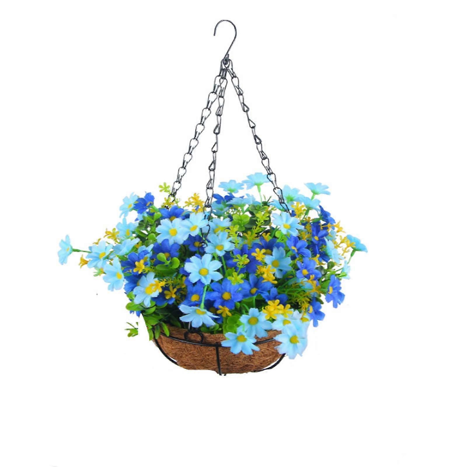 WinysinOutdoor Hanging Flowers With Basket Hanger Artificial Flowers Faux Plastic Greenery For Indoor Garden Porch Window Box Home Wedding Decor