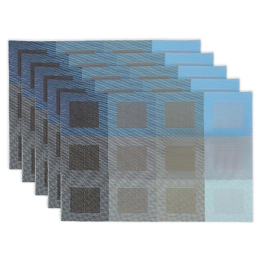 Wipable set of 5 woven vinyl placemats PVC placemats Thermal insulation, antifouling and non-slip kitchen table decoration navy blue, 45 x 30cm.