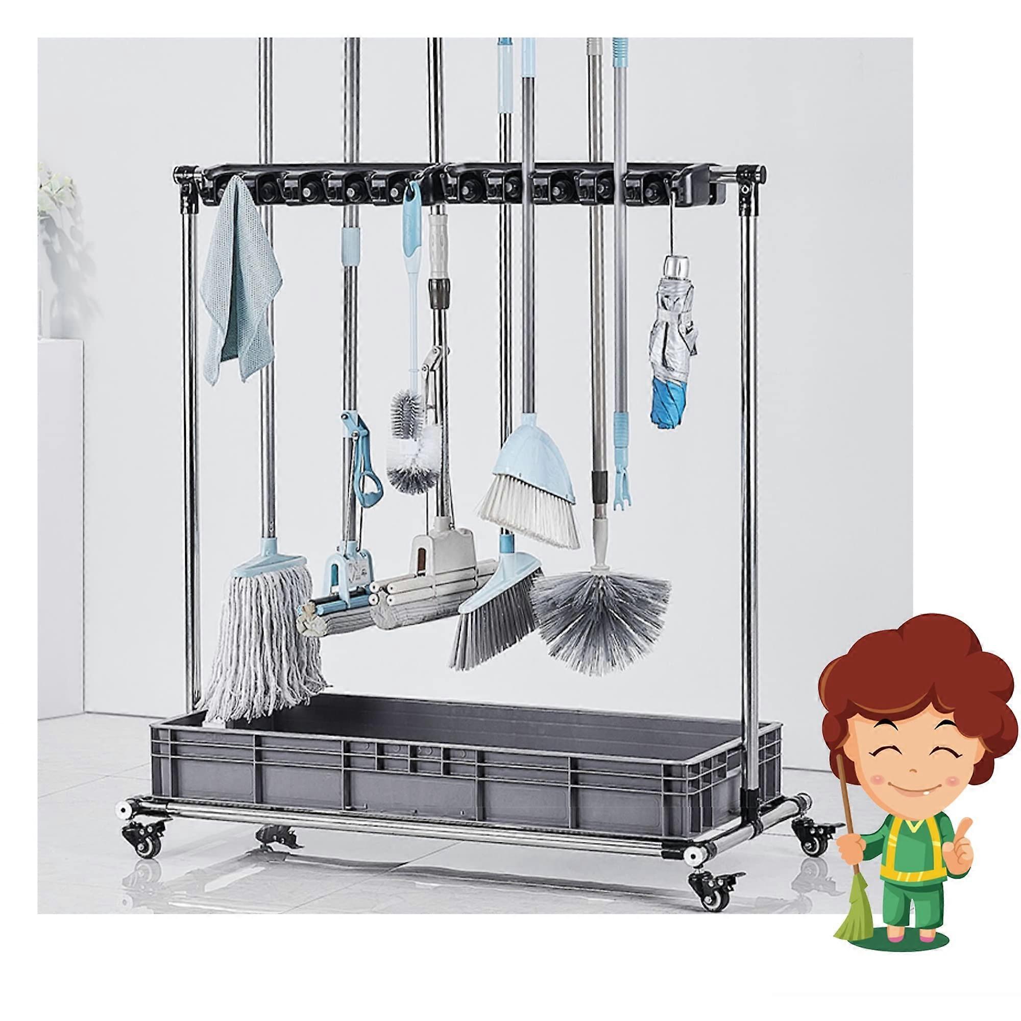 Wischmop Besenhalterung 8-Slot Floor-Mounted Stainless Steel Mop and Tool Holder Rack No-Drill for Office Garage Hotel