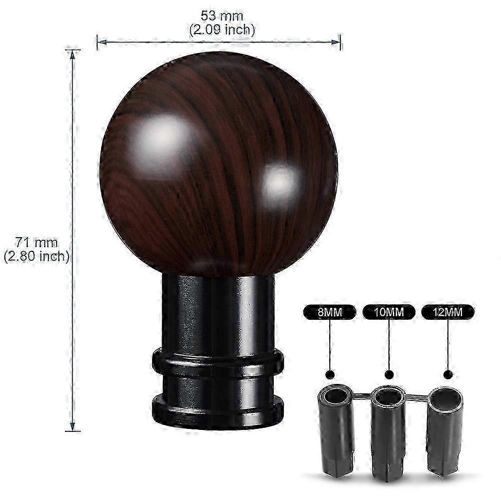 Wood Grain Car Gear Shift Knob, Round Ball Aluminium Car Gear Shifter Knob for Most Manual Automatic Car with 3 Adapters 8mm 10mm 12mm (Brown)