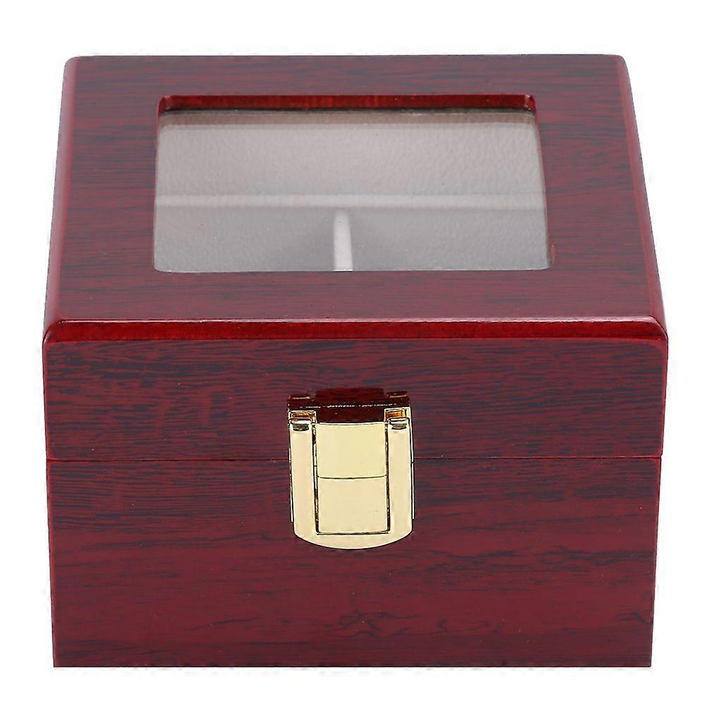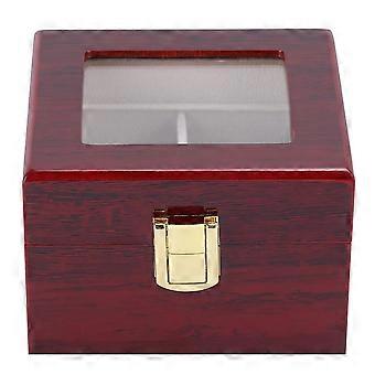 Wooden 2 Grid Watch Display Box Transparent Window Watch Storage Box (Red)
