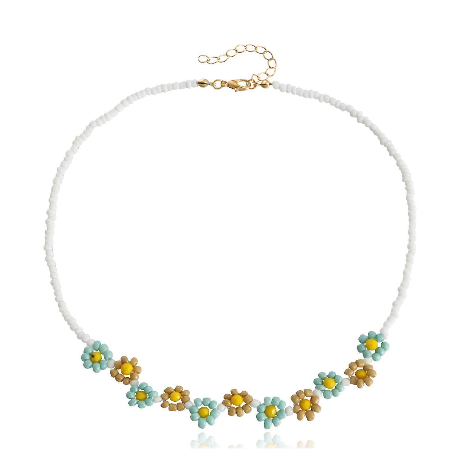 Y2K Accessories Fashion Colorful Flower Pendant Necklace Punk Egirl Sweet Cool Beaded Clavicle Chain Aesthetic Jewelry light color